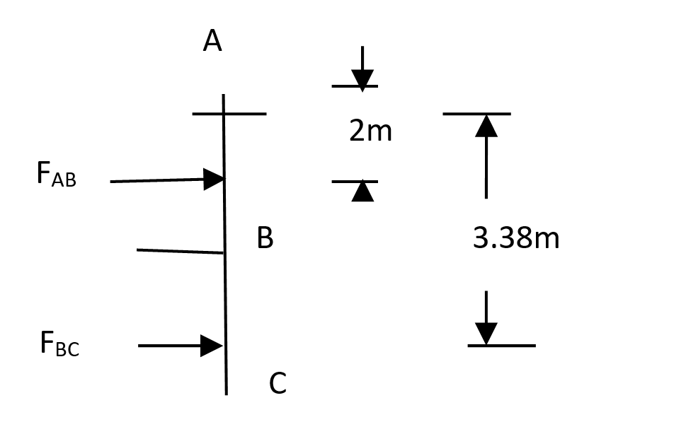 Water acts on BC, and the equivalent depth of water for 3 m of oil is: