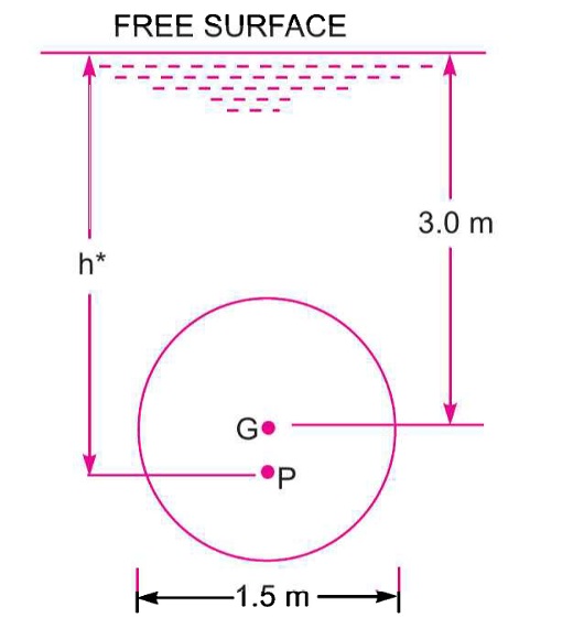 Determine the total pressure on a circular plate of diameter 1.5 m which is placed vertically in water in such a way that the centre of the plate is 3 m below the free surface of water. Find the position of the centre of pressure also.
